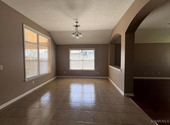 SECURITY DEPOSIT$2,200/AVAILABLE 9/30/25.This wonderful four bedroom, two bath open floor plan offers a formal living room, formal dining room, great room with hardwood floors and fireplace, breakfast bar, and breakfast room. High ceilings, architectural arches, elegant lighting throughout. Main bedroom suite is spacious with a walk-in closet and main bath has jetted tub with separate shower and double vanities. So many features that make this home feel welcoming and perfect for entertaining. Outdoor features include two covered porches, and a fenced back yard. The home is pre-wired for a security system and the neighborhood is convenient to all East Montgomery has to offer…shopping, schools, churches, banks, & I-85.