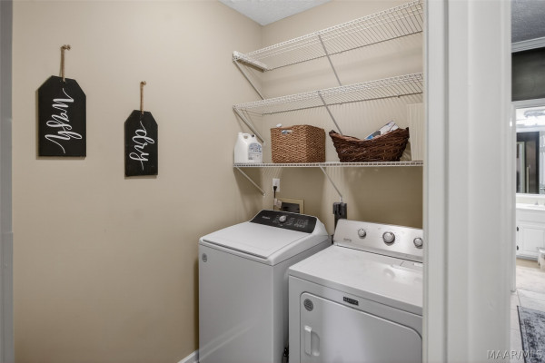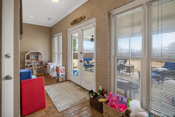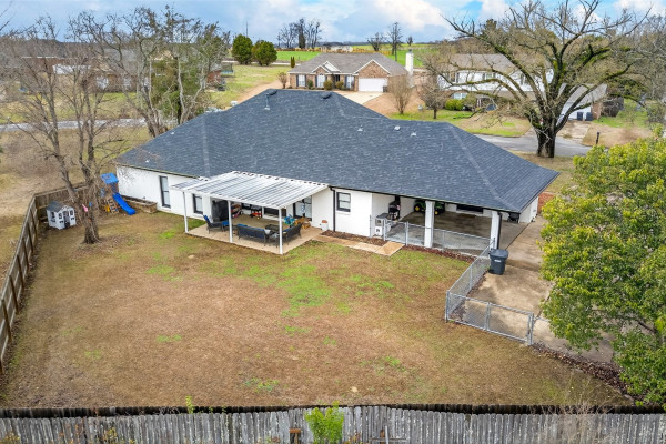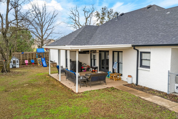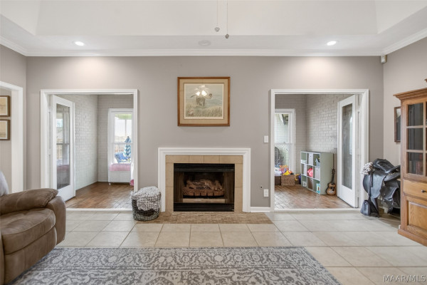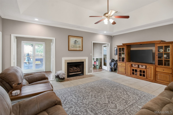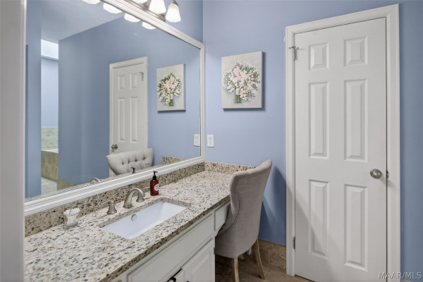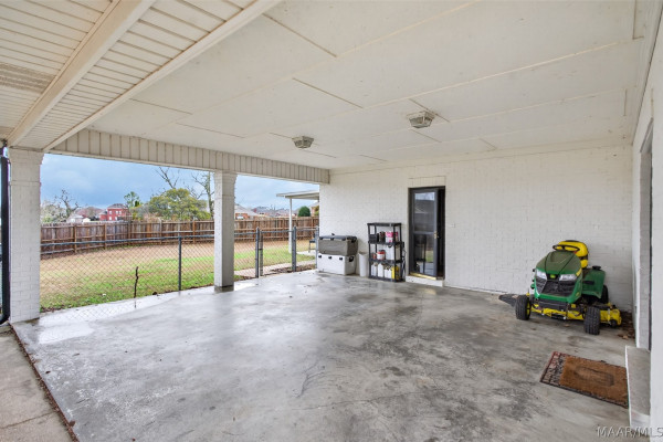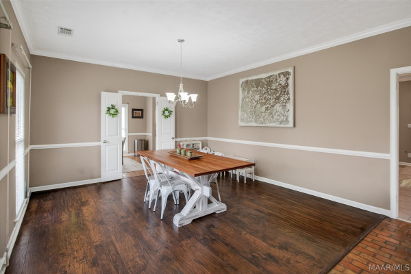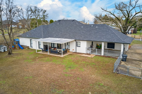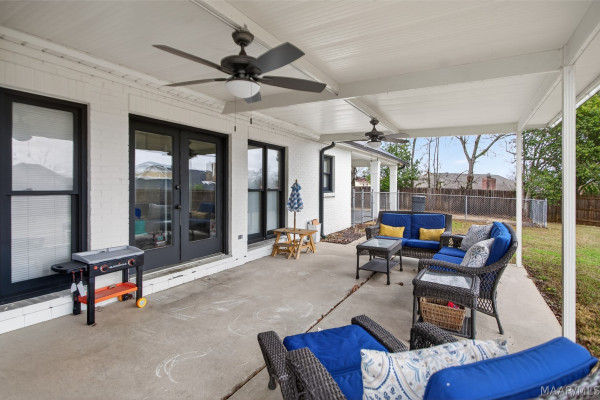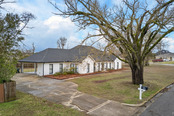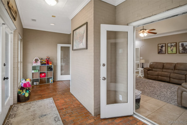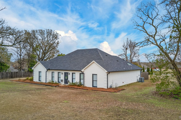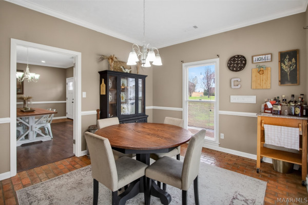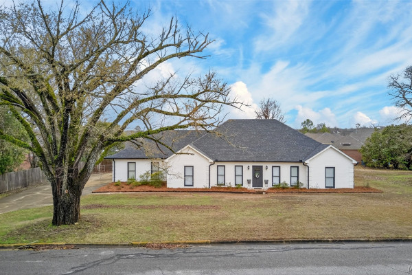 Exceptional curb appeal welcomes you to this beautiful 2,616 sq ft home in the desirable Rolling Hills Subdivision, zoned for Pike Road Schools. The home makes a striking first impression with its white painted brick exterior and bold black windows, creating a timeless statement of charm and understated elegance. This well-maintained home offers numerous updates and thoughtful details throughout. Recent improvements include a new roof in 2021, HVAC replacement in 2019, new carpet, interior paint, front windows, gutters, along with new flooring in the dining room. The kitchen features granite countertops, abundant cabinetry, pantry, breakfast area, and stainless steel appliances installed in 2019. All kitchen appliances to remain. Just off the kitchen is a dedicated office with beautiful brick floors that flow seamlessly from the kitchen, adding warmth and character. A separate laundry room is conveniently located nearby, and the washer and dryer will remain with the home. The spacious family room includes a ventless gas log fireplace and opens to a truly stunning sunroom with painted brick walls and original brick flooring, overlooking the backyard. Enjoy outdoor living on the back porch with a gas hookup for grilling, ceiling fans added in 2023, and a TV that remains for endless entertainment. The primary suite is generously sized and offers a spa-like bath with garden tub, separate shower, skylight, double vanity, and his and her closets. Two additional bedrooms provide great space, and the hall bath features a double vanity with a separate shower and commode area. For parking, there is a two-car carport with an attached storage room featuring a sink, cabinets, and built-in storage. A privacy fence added in 2023. The property has an underground sprinkler system as well. Less than 1 mile away from Cottonwood Golf Club, this home offers comfort, functionality, and thoughtful updates throughout — a must-see in Rolling Hills.