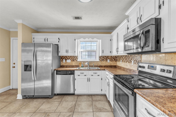 Inside, the home boasts stainless steel appliances, a stylish tile backsplash, fresh paint, new oil-rubbed bronze light fixtures throughout, beautiful hardwood floors, and more.