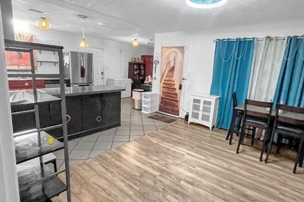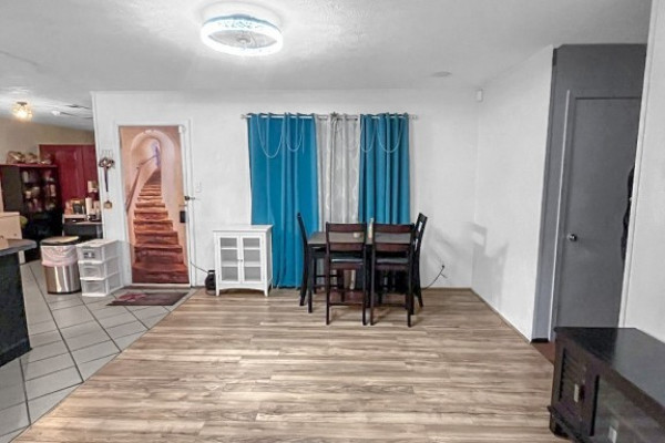 This charming home offers wonderful curb appeal and a fully fenced lot. Inside, you’ll find four bedrooms and two bathrooms, plus a flexible front room that can serve as a formal dining area, home office, or den. The open-concept kitchen with electric stove flows seamlessly into the main living spaces, making it easy to cook and gather. The primary suite includes its own private bath, while three additional bedrooms provide plenty of space for family, guests, or hobbies. Step outside to a covered porch with storage and a generous backyard—ready to become your perfect outdoor retreat.
