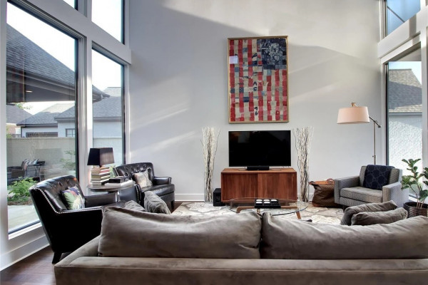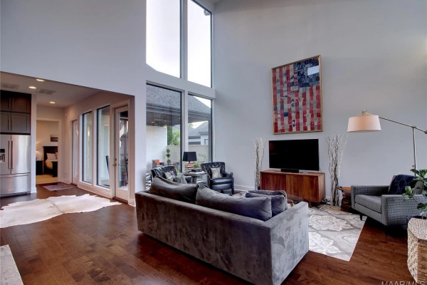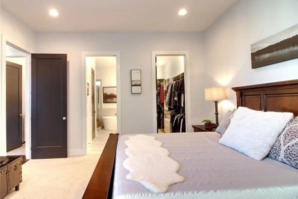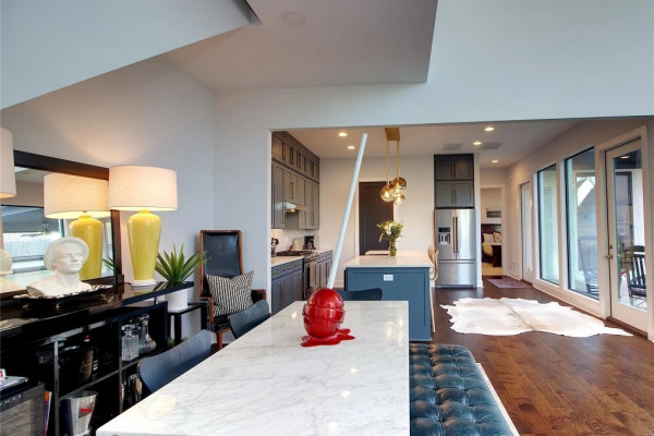 The modern, open design includes a brick-walled garden and a private covered porch. There is also a vast storage area, a two-car garage, and high-quality finishes throughout the property. Additional highlights include motorized blinds, a gas tankless water heater, zoned thermostats, and high-end appliances. This home is a must-see!