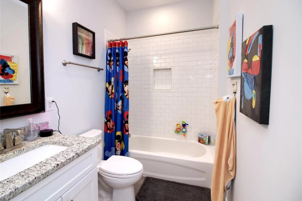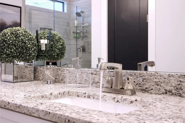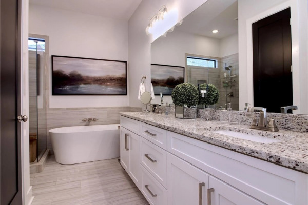 Incredible floor plan features soaring 20-foot ceilings and 9-foot windows, complemented by stone countertops throughout the home. The master bathroom includes a standalone tub and a separate shower. Each bedroom is exceptionally spacious and has its own private bathroom.