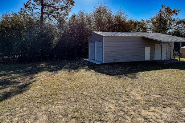 41 x 24 WORKSHOP has two 10×10 roll-up doors and an 8×8 roll-up door! The Workshop roof is insulated to prevent condensation. The attached lean-to measures 21 x 12 x 9.