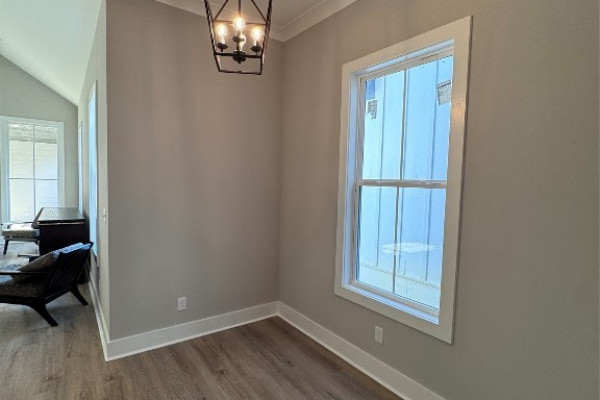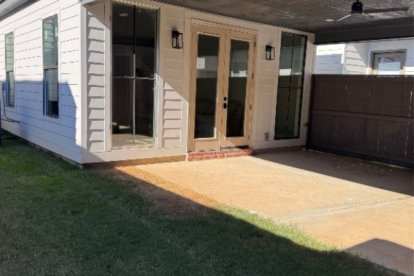 This recently completed home offers a private courtyard with lots and lots of light. Its open concept great room, with its vaulted ceilings, lots of windows and French doors onto a large covered porch offers so many amenities and so little maintenance.