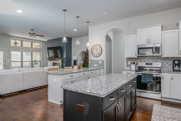 Hedgefield, a Lowder development, is conveniently located off of McQueen Smith Road in Prattville near Centerpoint Church. This home has all of the upgrades, style and charm. The front porch leads you into the home through a large foyer. The rest is history…you’ll immediately find comfort in this large open floor plan. A kitchen with granite countertops, huge pantry, lots of cabinets and an accented bar, a spacious eating area all overlooking the large great room makes this space perfect for family time and hosting guests. The bedroom design boasts a split floorplan with the main bedroom and bathroom just off one side of the great room and the remaining 3 bedrooms with its bathroom on the other. The dining room can be used for typical dining, a custom office space or playroom. Start or wind down the day on the covered patio space showcasing a huge backyard for those beautiful fall days. The exterior has an irrigation system in both the front and back and includes a gutter system as well. Welcome Home to the Hedgefield community and to the home that meets the needs of your family, 714 Hedgefied Way!!