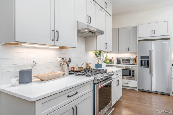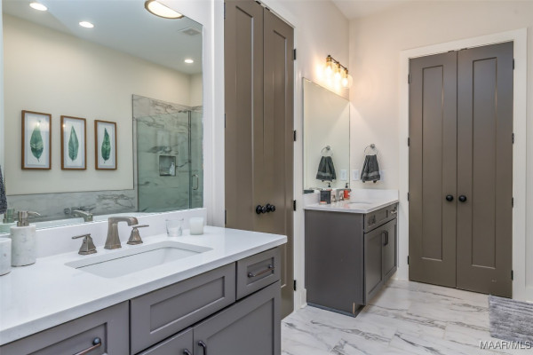 Three bedrooms are downstairs, one could be an additional Living Room, with an expansive separate bedroom and en-suite bath in the half story. The garage, tucked away on a parking court, includes a large work or hobby room, both with a beautifully finished floor. With its thoughtful layout, styles finishes, and indoor-outdoor living, this home combines luxury, practicality, and charm. All within a gated community adjacent to Wynlakes and Eastchase Mall, Montgomery’s premier shopping and dining area.