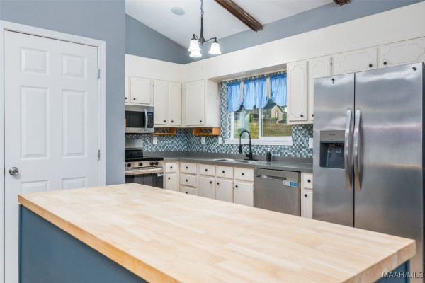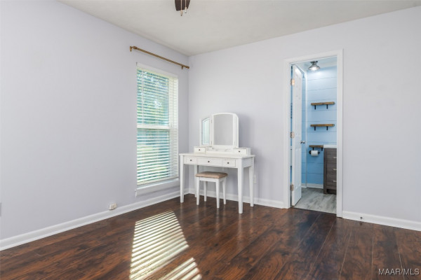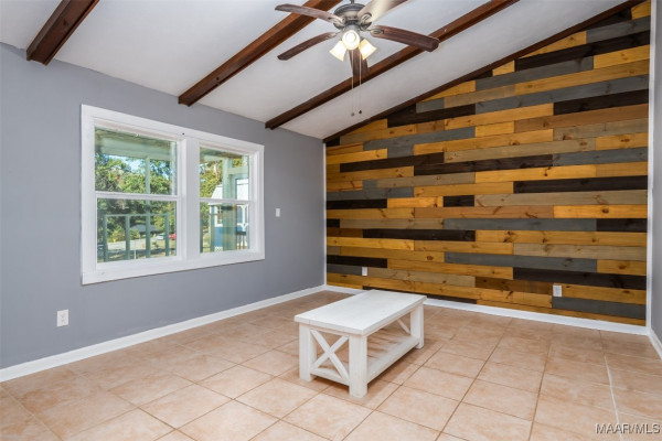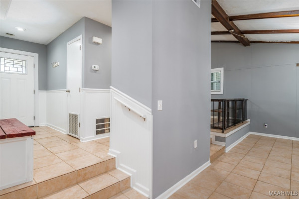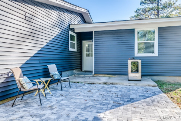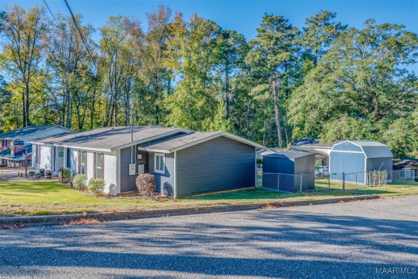 This home was partially renovated in 2014 and was just refreshed again with new flooring, some new appliances, new windows, fresh paint and a revamped covered patio! Entering through the front door into the foyer, to your right is a long hallway. Down this hall, first you will come to, on the right, the hall bath with shiplap walls and tile surround bath insert. Just beyond this to your left is the first bedroom. Across the hall is the second bedroom, which has direct access to the hall bath. At the end of the hall is the primary bedroom with attached bath and walk in closet. The bath has double vanities and a walk in tiled shower with built in cubbies. Back to the foyer and straight ahead, walk down a few steps and enter into the living room, complete with fireplace and large double windows looking onto the back covered patio. On the other side of the fireplace is the dining room. This room enjoys a brick wall with a built in book case and entry to the back patio area. Up the steps, you walk into the breakfast area on your way to the kitchen. To the left is a large laundry room. To the right, go down a few steps and into the hall to the fourth bedroom and the study. At the end of this hall is a door leading to the uncovered patio area finished with pavers. Included in the fenced in yard are 2 storage buildings, both will remain. The owners have not only remodeled and renovated for looks, but have taken great care of the home to include adding the siding on 2024, having the air ducts cleaned in 2020, adding the split units in 2021 and a new roof in 2019.