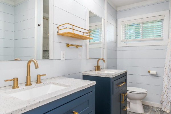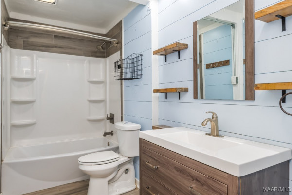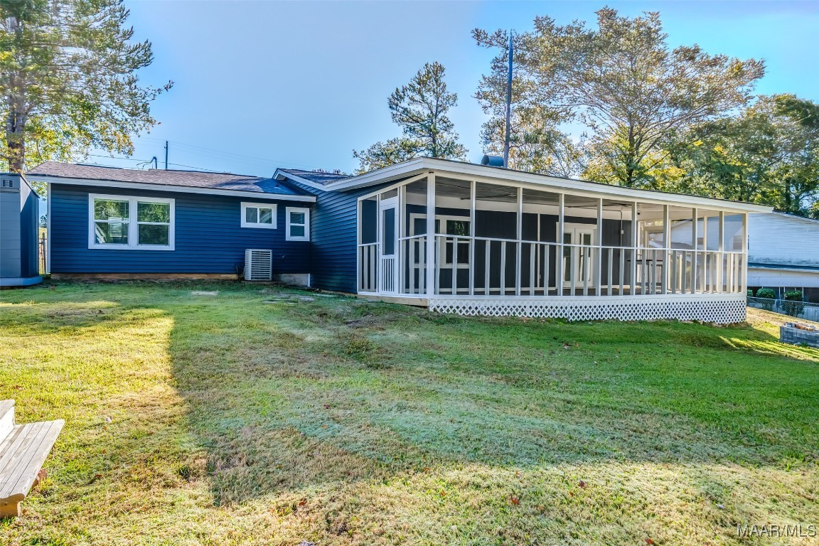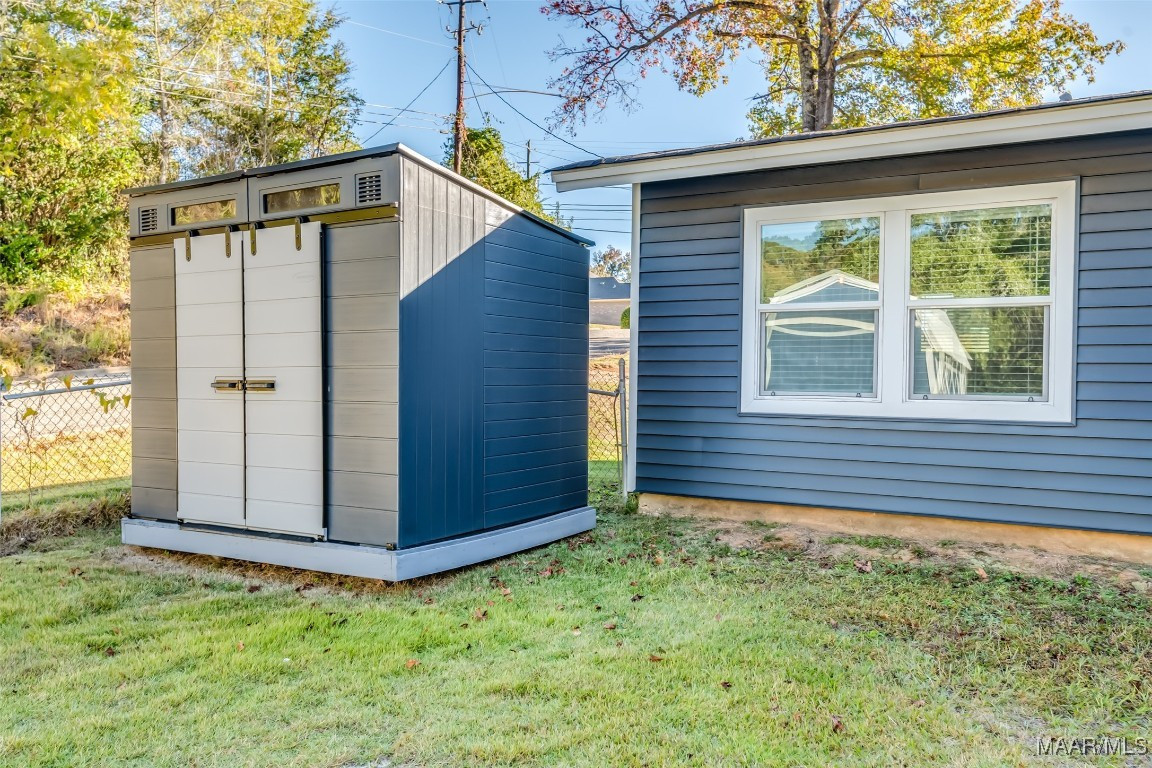 This home was partially renovated in 2014 and was just refreshed again with new flooring, some new appliances, new windows, fresh paint and a revamped covered patio! Entering through the front door into the foyer, to your right is a long hallway. Down this hall, first you will come to, on the right, the hall bath with shiplap walls and tile surround bath insert. Just beyond this to your left is the first bedroom. Across the hall is the second bedroom, which has direct access to the hall bath. At the end of the hall is the primary bedroom with attached bath and walk in closet. The bath has double vanities and a walk in tiled shower with built in cubbies. Back to the foyer and straight ahead, walk down a few steps and enter into the living room, complete with fireplace and large double windows looking onto the back covered patio. On the other side of the fireplace is the dining room. This room enjoys a brick wall with a built in book case and entry to the back patio area. Up the steps, you walk into the breakfast area on your way to the kitchen. To the left is a large laundry room. To the right, go down a few steps and into the hall to the fourth bedroom and the study. At the end of this hall is a door leading to the uncovered patio area finished with pavers. Included in the fenced in yard are 2 storage buildings, both will remain. The owners have not only remodeled and renovated for looks, but have taken great care of the home to include adding the siding on 2024, having the air ducts cleaned in 2020, adding the split units in 2021 and a new roof in 2019.