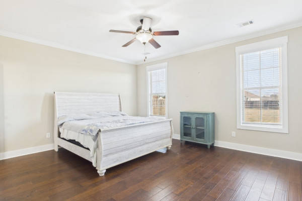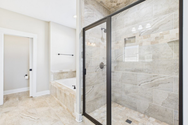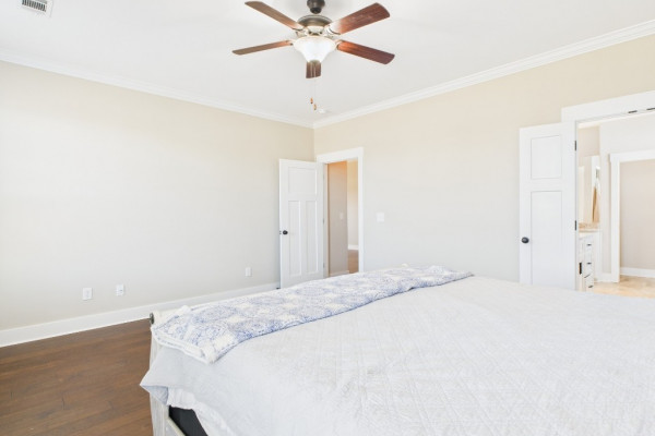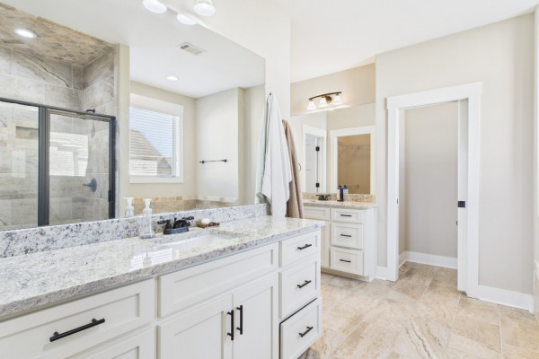 The luxurious primary suite includes two walk-in closets and a beautifully appointed master bath. Energy-efficient spray foam insulation helps keep the home comfortable year-round.