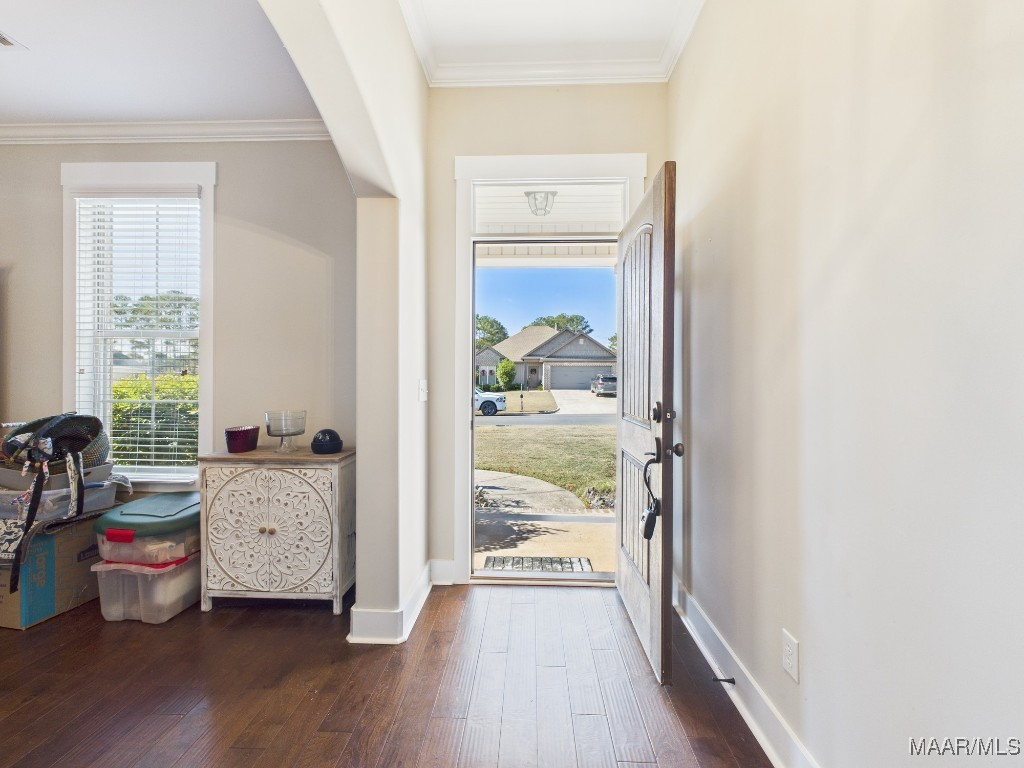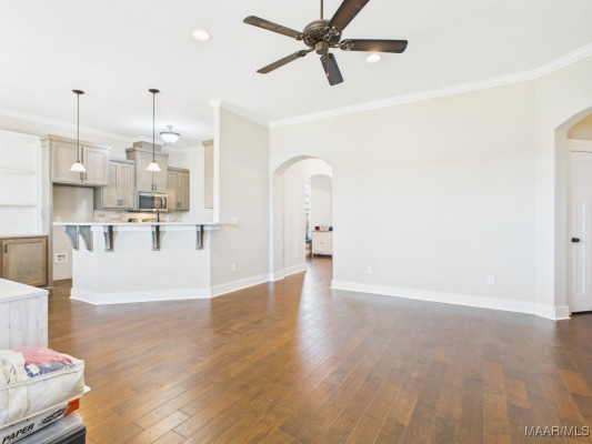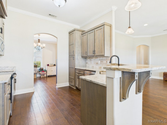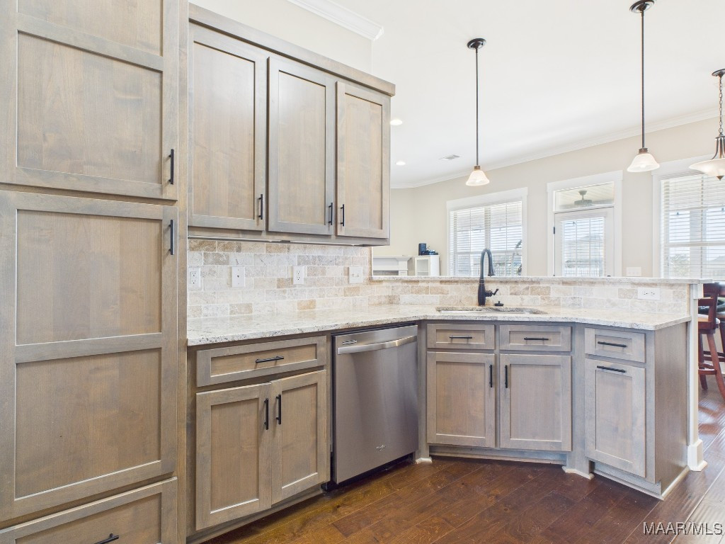 Inside, you’ll find elegant finishes throughout, including hardwood floors, granite countertops, 12-ft ceilings, and impressive crown molding. The kitchen overlooks a bright breakfast area and flows seamlessly into the living room, where a cozy gas fireplace creates the perfect gathering space. A separate formal dining room adds flexibility for entertaining or holiday meals.
