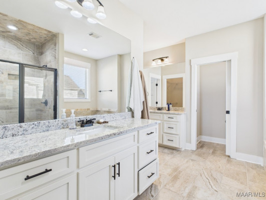 The luxurious primary suite includes two walk-in closets and a beautifully appointed master bath. Energy-efficient spray foam insulation helps keep the home comfortable year-round.