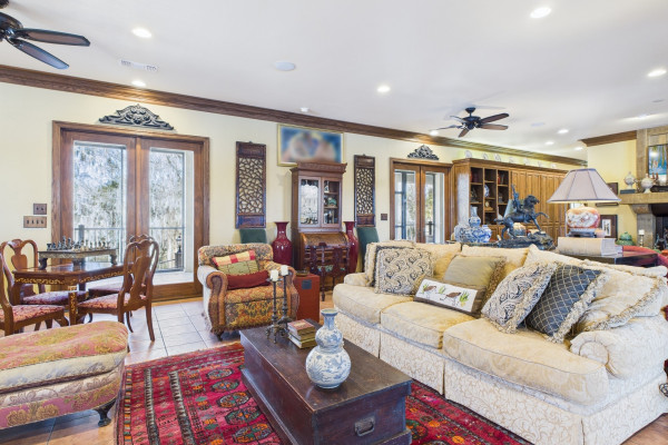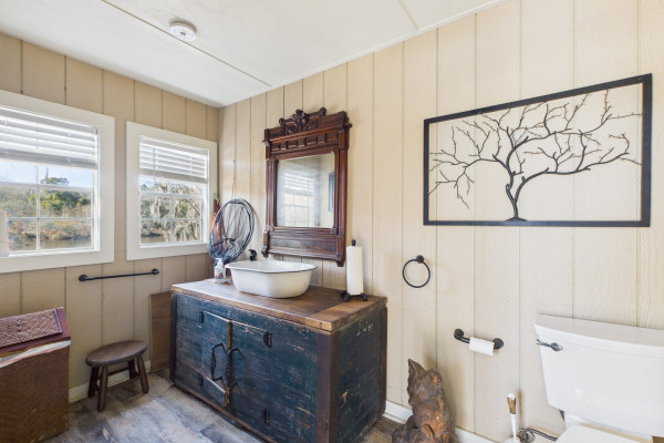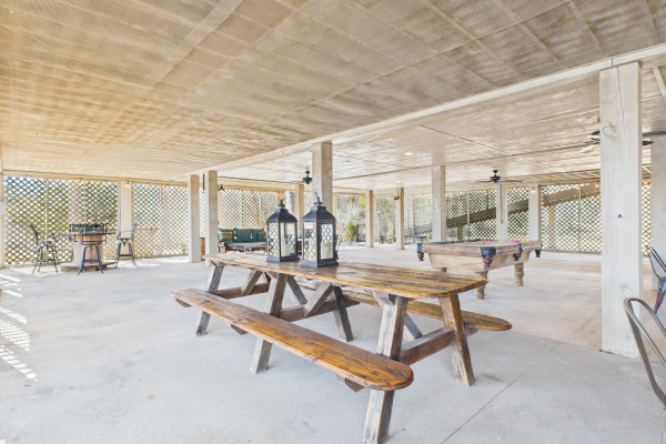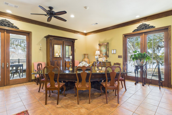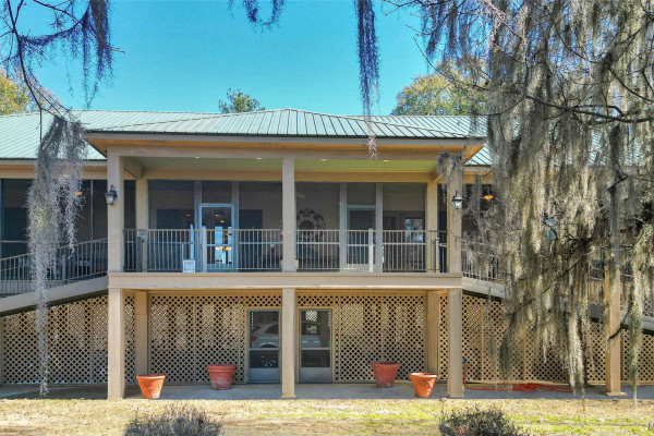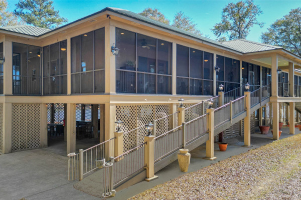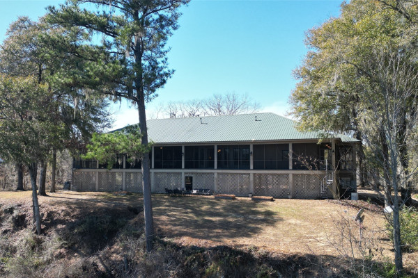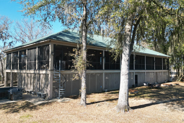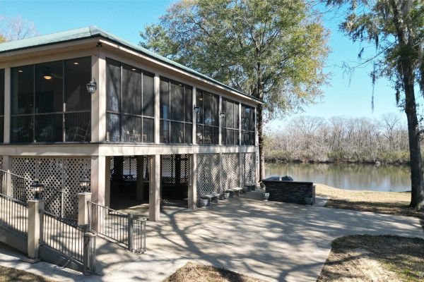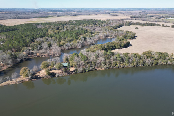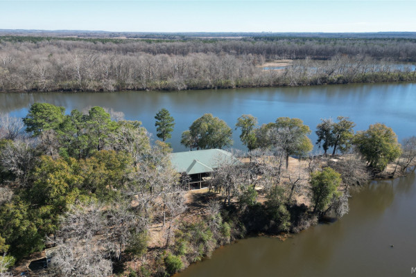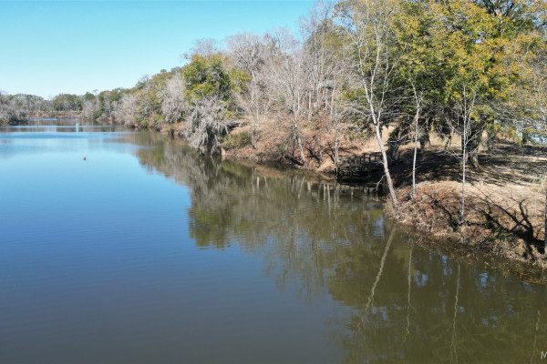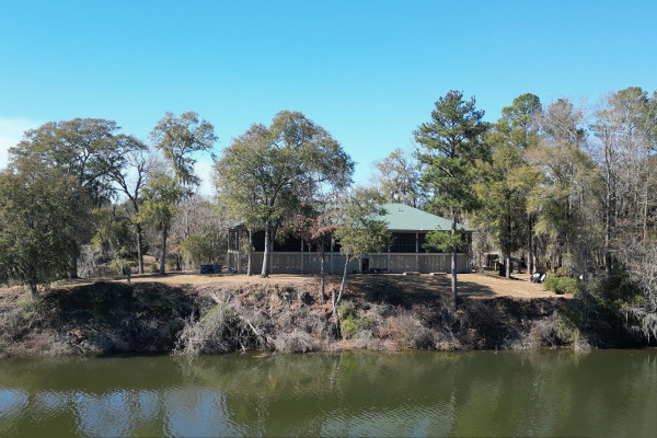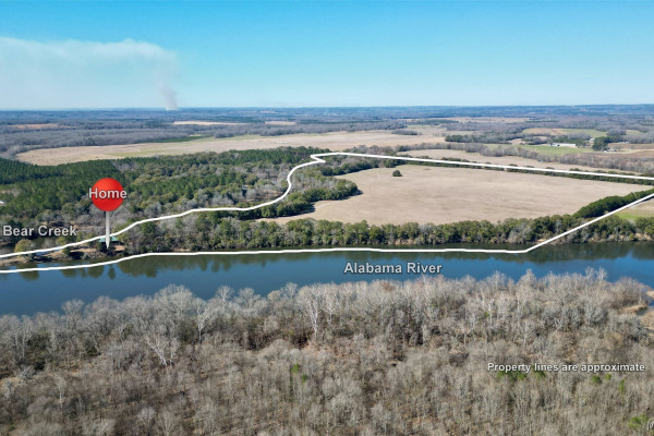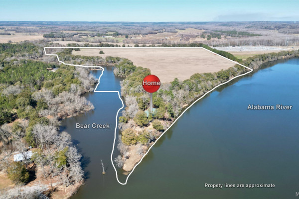 This extraordinary riverfront estate offers a rare opportunity to own over 133 acres at the confluence of Bear Creek and the Alabama River in southern Autauga County. With more than 5,000 feet of water frontage and a private drive stretching over three-quarters of a mile along the wooded shoreline, the property combines breathtaking natural beauty with exceptional privacy and versatility. Expansive hay fields, and panoramic water views create a truly one-of-a-kind setting. Elevated on piers, the nearly 3,000± square foot custom home features drive-thru covered parking below with ample space for multiple vehicles, storage, or use as an entertainment area, along with elevator access to the main living level. Inside, elegant open living spaces are anchored by a grand fireplace and hearth, while abundant windows frame stunning views of the surrounding landscape. The kitchen features granite countertops and professional-grade appliances including a six-burner gas range with griddle and vent hood, four ovens, electric cooktop with built-in vent, warming drawer, and more—perfect for serving large gatherings. Just off the kitchen sits the dining room with custom built-ins and views up and down the river. The home offers two spacious bedrooms, each with vaulted shiplap ceilings, French door access to the veranda, walk-in closets, and private en suite bathrooms. The covered wrap-around and screened veranda serves as a spectacular gathering space, offering unmatched views of the water and ample room for entertaining. Beyond the home, the property features the renowned River Pointe Venue, an exceptional outdoor event space ideal for special celebrations. Amenities include a riverside patio, cooking station, firepit, and a private boat ramp. With its unparalleled water frontage, event-ready amenities, and stunning natural surroundings, this remarkable estate offers limitless possibilities as a private retreat, recreational property, working farm, or income-producing venue.