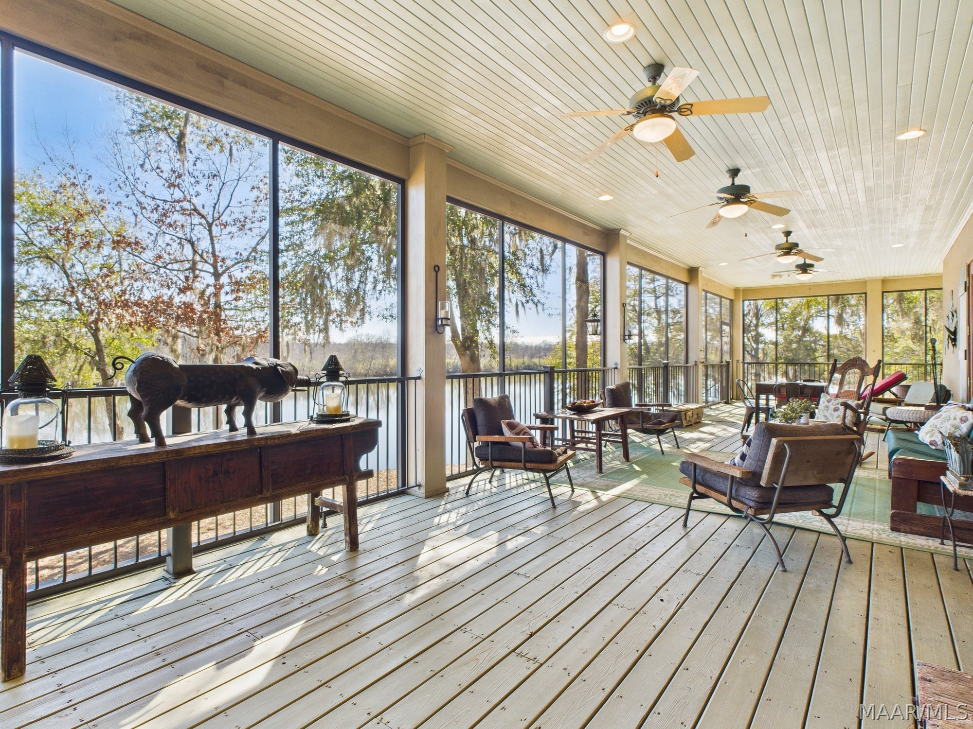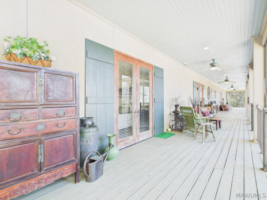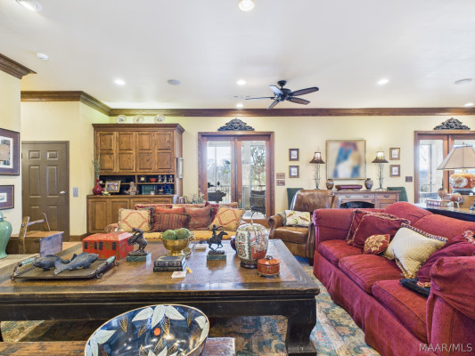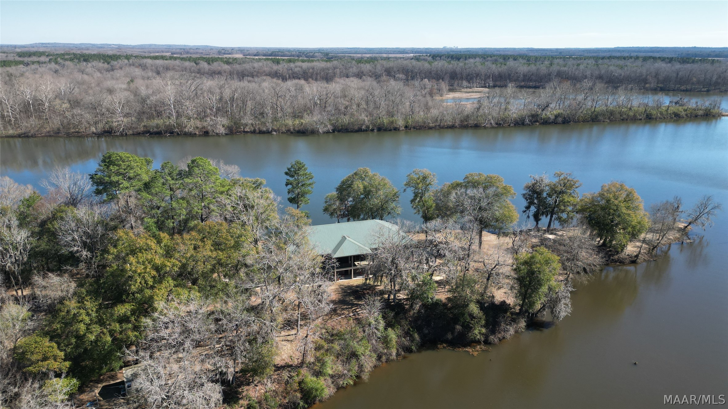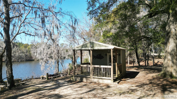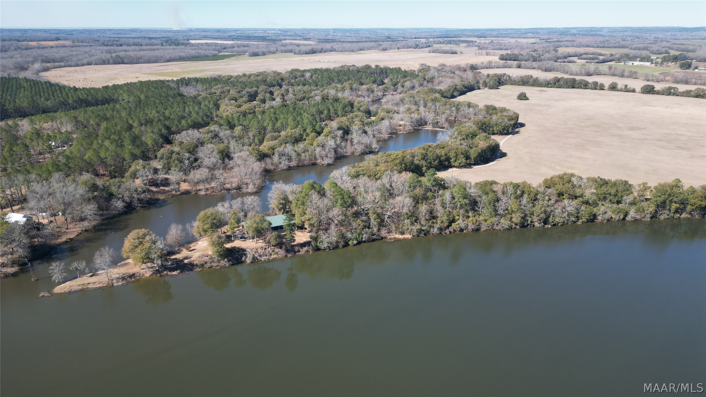 This extraordinary riverfront estate offers a rare opportunity to own over 133 acres at the confluence of Bear Creek and the Alabama River in southern Autauga County. With more than 5,000 feet of water frontage and a private drive stretching over three-quarters of a mile along the wooded shoreline, the property combines breathtaking natural beauty with exceptional privacy and versatility. Expansive hay fields, and panoramic water views create a truly one-of-a-kind setting. Elevated on piers, the nearly 3,000± square foot custom home features drive-thru covered parking below with ample space for multiple vehicles, storage, or use as an entertainment area, along with elevator access to the main living level. Inside, elegant open living spaces are anchored by a grand fireplace and hearth, while abundant windows frame stunning views of the surrounding landscape. The kitchen features granite countertops and professional-grade appliances including a six-burner gas range with griddle and vent hood, four ovens, electric cooktop with built-in vent, warming drawer, and more—perfect for serving large gatherings. Just off the kitchen sits the dining room with custom built-ins and views up and down the river. The home offers two spacious bedrooms, each with vaulted shiplap ceilings, French door access to the veranda, walk-in closets, and private en suite bathrooms. The covered wrap-around and screened veranda serves as a spectacular gathering space, offering unmatched views of the water and ample room for entertaining. Beyond the home, the property features the renowned River Pointe Venue, an exceptional outdoor event space ideal for special celebrations. Amenities include a riverside patio, cooking station, firepit, and a private boat ramp. With its unparalleled water frontage, event-ready amenities, and stunning natural surroundings, this remarkable estate offers limitless possibilities as a private retreat, recreational property, working farm, or income-producing venue.