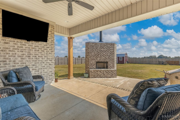 Out back, enjoy a large covered porch, extended patio with a freestanding outdoor fireplace, and a fully fenced backyard—ideal for relaxing evenings or entertaining friends and family.