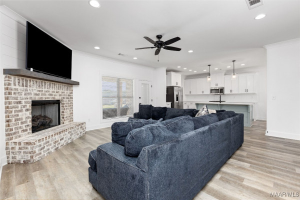 Step inside to a welcoming foyer that opens into a spacious family room anchored by a beautiful gas fireplace. The open-concept kitchen overlooks the living area and offers a large island, ample cabinet space, and expansive countertops—perfect for both everyday living and entertaining. A dining area just off the kitchen easily accommodates large gatherings.