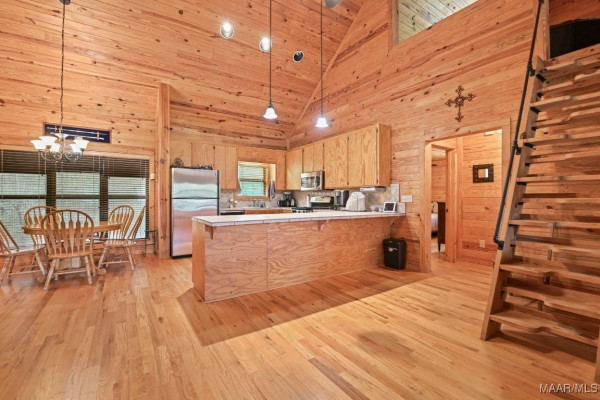 With an all-wood exterior and beautifully crafted wood interior walls throughout, every detail exudes rustic elegance.