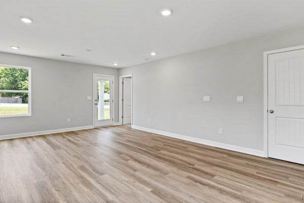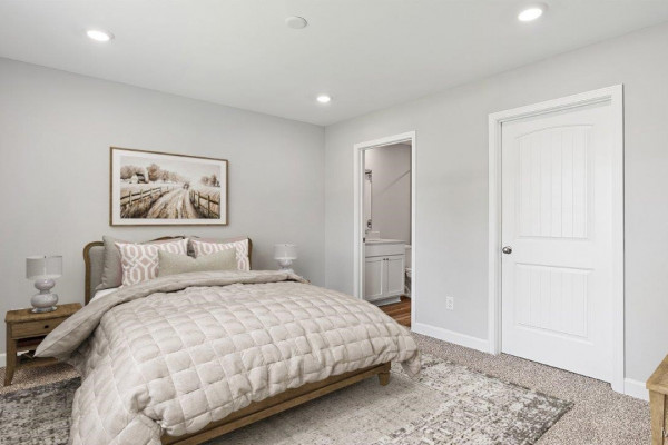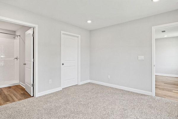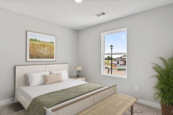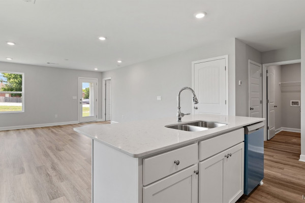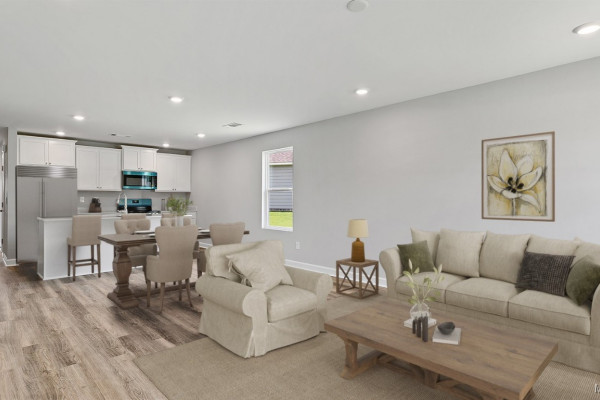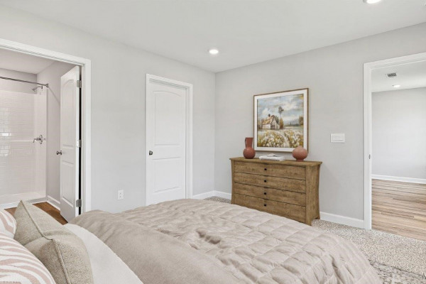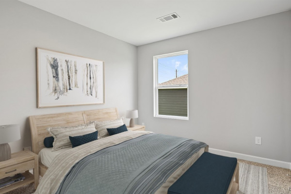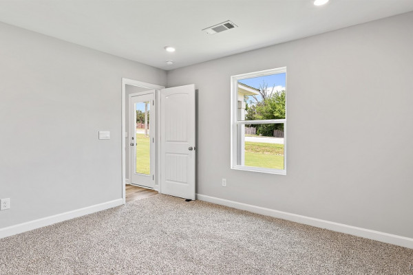 As you enter the home, you’ll find two bedrooms with a conveniently located bathroom between them on one side, and the garage on the other. Moving further in, you’ll be greeted by a spacious open kitchen with a center island, seamlessly connected to a dining area that leads into the living room. The living room opens to the backyard, making it perfect for entertaining. Adjacent to the living room is the owners’ suite, which includes an ensuite bathroom and a large closet.