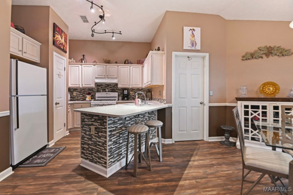 The eat-in kitchen has everything you need: all major appliances, new quartz countertops with plenty of prep space, a breakfast bar, pantry, and ample cabinets. Just off the kitchen, the laundry room boasts brand-new custom cabinets that make everyday chores a little brighter. A new roof (2023) offers peace of mind, while the piggyback HVAC system ensures comfort but also functions more economically.
