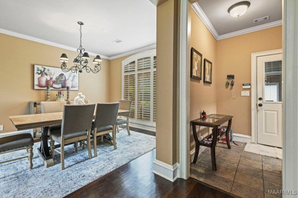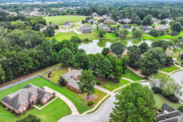 This beautifully crafted 4-bedroom, 3.5-bath home sits on a quiet cul-de-sac with a generous 100-foot lot and showcases the quality and attention to detail expected from a custom builder. The open floor plan features soaring two-story ceilings and a spacious family room with a striking Craig Stone gas fireplace and custom built-in cabinetry. Rich 5″ hardwood floors run through the main living areas, complemented by granite countertops in both the kitchen and bathrooms, double crown molding, and abundant natural light from large windows and transoms. The kitchen offers designer wood cabinetry, a custom wood hood, a gas cooktop, double ovens, a large walk-in pantry, and a massive work island, all designed for both beauty and functionality. The sink overlooks the backyard, allowing light and views while washing up. The utility room includes ample cabinet space and a deep utility sink perfect for pets, shoes, plants, and more. The primary suite features a garden tub, a separate oversized shower, and a spacious walk-in closet. Upstairs, a large bonus room offers flexible living space for entertainment or relaxation. The oversized two-car garage includes a convenient side entry door for easy access without opening the main door, and the extended driveway provides additional parking and flexibility. Additional features include plantation shutters, ceiling fans in all bedrooms, a surround sound system, a full irrigation system, and a covered patio with an extended deck overlooking the peaceful backyard.