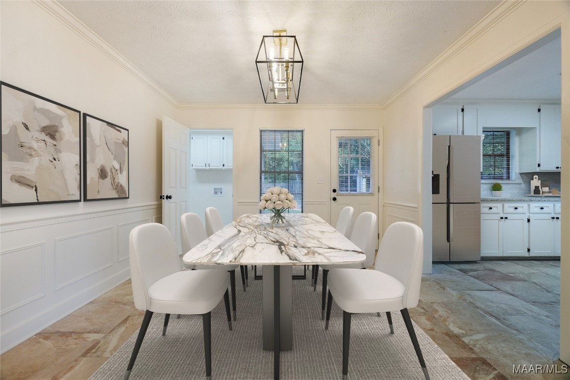 Step inside to a bright and airy living room featuring a stunning tray ceiling and cozy wood burning fireplace, perfect for relaxing or entertaining. The separate formal dining room with wainscoting and gorgeous chair rail sets the stage for memorable gatherings, while the newly renovated kitchen is a chef’s dream, boasting refaced cabinets, gleaming new stainless-steel appliances, and stylish granite countertops. Freshly painted walls and new flooring throughout create a crisp, contemporary feel.