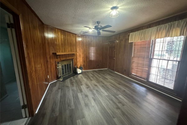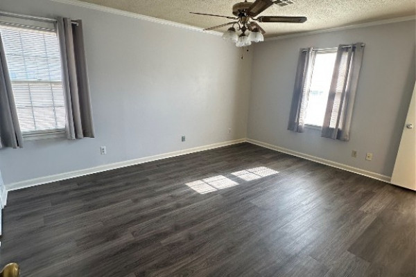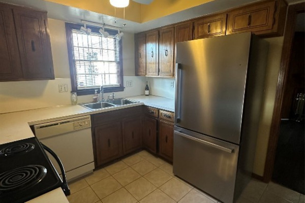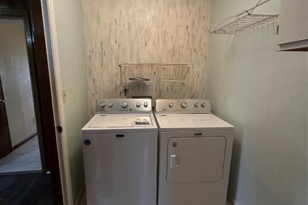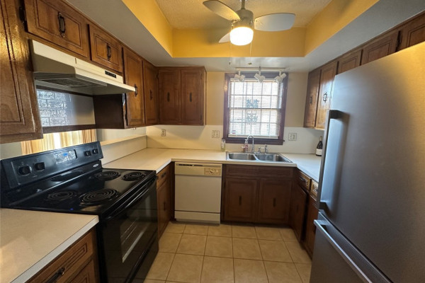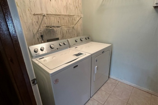 Situated on an attractive corner lot, this well-designed home offers 3 bedrooms and 2 bathrooms with thoughtful living spaces throughout. The kitchen is equipped with an electric range, dishwasher, and a new refrigerator, while a dedicated laundry room includes both washer and dryer for added convenience. Enjoy both a main living room and a separate family den that overlooks a private patio, enclosed by a charming brick half wall—perfect for relaxing or entertaining. All bedrooms feature spacious closets, providing ample storage and comfort. The entire home has vinyl plank flooring.