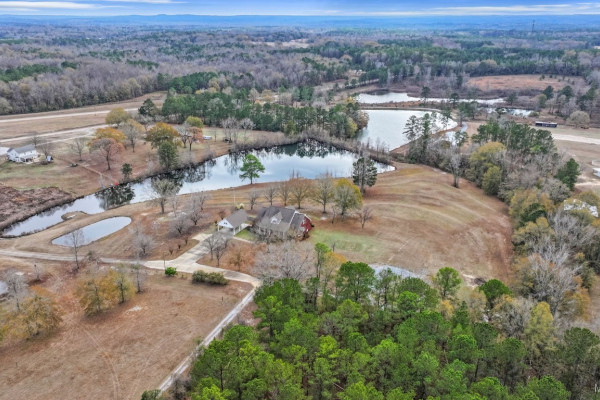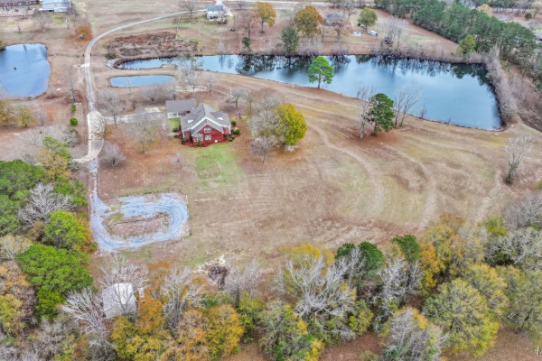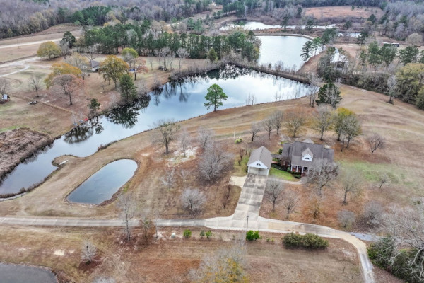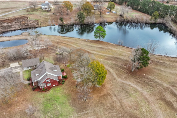 Nestled on approximately 13 acres, this gorgeous 4 bedroom home will wow you from the moment you drive up. The huge covered front porch is the perfect place for relaxing in your rocking chair while sipping on a glass of sweet tea. When you walk through the foyer, you will notice expansive ceilings and gorgeous floors. The spacious living room has a cozy fireplace, built-in book shelves and wood flooring. The kitchen is a chef’s dream with beautiful granite, plenty of cabinets and counter space, work island, double ovens, gas stove, and breakfast area! There is a gathering room beside the kitchen where you can relax and enjoy reading your favorite book or playing games with family and friends. The formal dining room offers wood flooring and plenty of space for a large table. The master suite is simply luxurious. The master bedroom has wood flooring, a sitting area with a fire place, 2 closets, and built in book shelves. The gorgeous master bath offers double vanities, a separate walk in shower, a large soaking tub and tile flooring! The main level also has a large guest bedroom with private bath room – along with 2 half baths. Upstairs features 2 large guest bedrooms, 2 full baths, a bonus room that can be used as an office, and tons of storage! Outside, you will find a double carport and attached 12 x 14 storage building. There is also a large covered back porch overlooking the gorgous pond. There are approximately 13 acres to roam, along with the large pond and a small pond, as well as a 24 x 24 storage building. You won’t find another home like this one! Make an appointment to view it today.