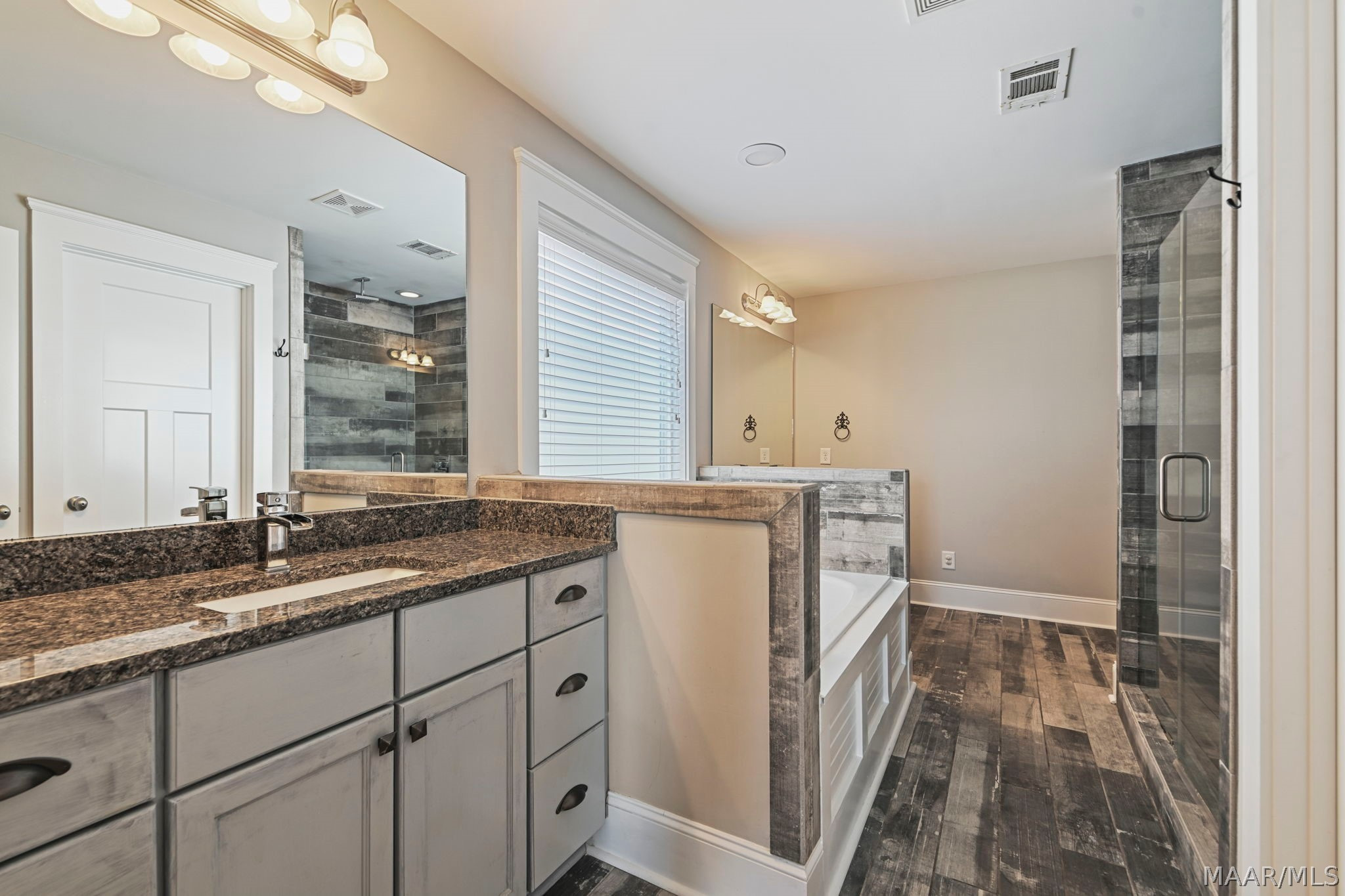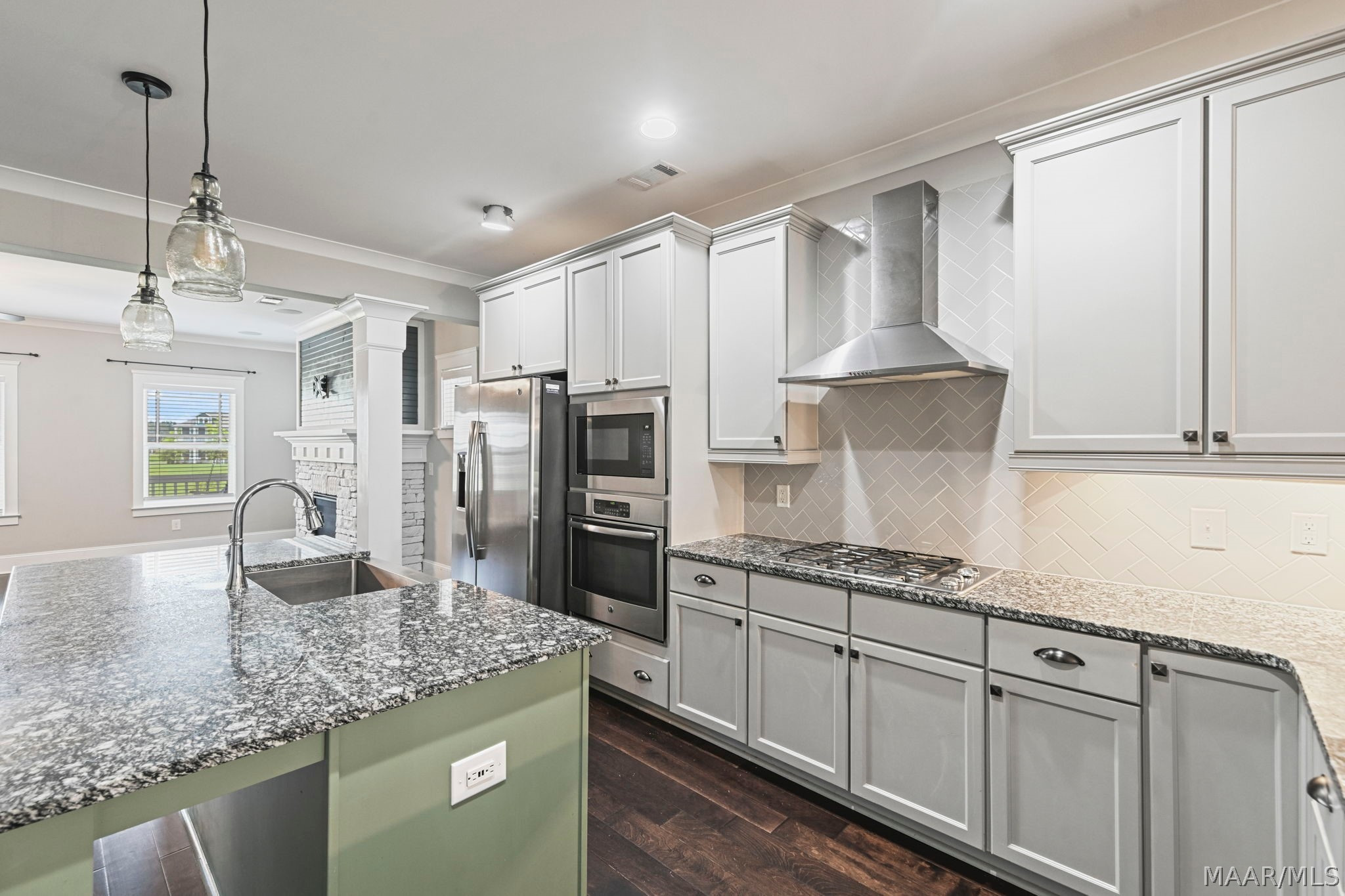 This home has a 3.75% assumeable VA loan! The green space, park, and pool are all features you are sure to love in this Pike Road home in the desirable neighborhood of The Orchards located right near The Waters, Boykin Lakes, and Pike Road elementary school. This spacious home has a walk in pantry, gorgeous countertops, a large farm sink, amazing stove, open concept home in the kitchen,dining, and living room! This home has a garage!!!! It also has a nice back deck. Priced to sell! Come see this beautiful spacious home today!