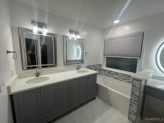 The primary bedroom suite is your personal sanctuary boasts a spa-grade bath to escape the cares of life that pampers the senses. Enjoy a soaking tub, double vanities with quartz countertops, a separate shower, a movie star lighted makeup station, heated towel racks, a large walk-in linen closet, and a luxurious walk in closet the size of a bedroom(previously an office/nursery). The additional 3 bedrooms and 2 baths offers privacy apart from the main bedroom.