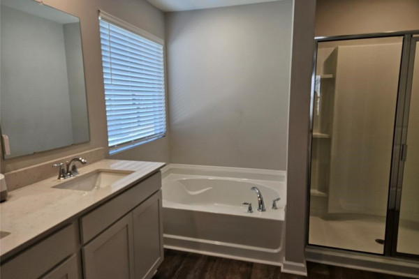Immaculate and move-in ready, this stunning home was built in 2023 and offers the perfect blend of modern design and comfort. Featuring 4 bedrooms and 2 bathrooms, this home boasts a large living / Family room with a spacious well-designed kitchen with a casual dining area, a huge island as the centerpiece and lots of cabinet space. The spacious master suite includes a spa-like bath with double vanities, garden tub, separate shower, and walk-in closet. This home is energy-efficient and equipped with Smart Home Technology. A privacy fence has been installed around the backyard to enhance family enjoyment.