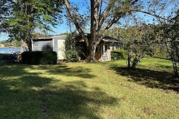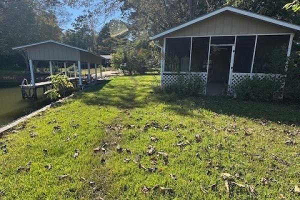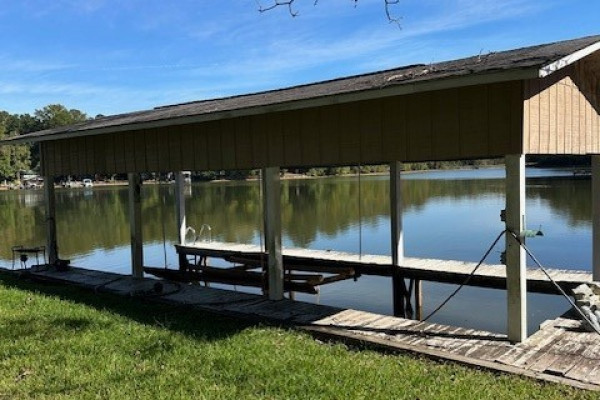 Beautiful flat lot with boat ramp, covered dock and a covered entertainment porch with kitchen. Beautiful view and very peaceful setting. Structures on the property need work or can be removed for new build. Adjacent to 7629 Highway 49 S (remodeled 4 BR/3BA home) for sale at $849,000.