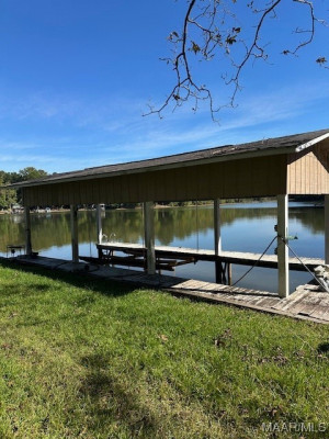 Beautiful flat lot with boat ramp, covered dock and a covered entertainment porch with kitchen. Beautiful view and very peaceful setting. Structures on the property need work or can be removed for new build. Adjacent to 7629 Highway 49 S (remodeled 4 BR/3BA home) for sale at $849,000.