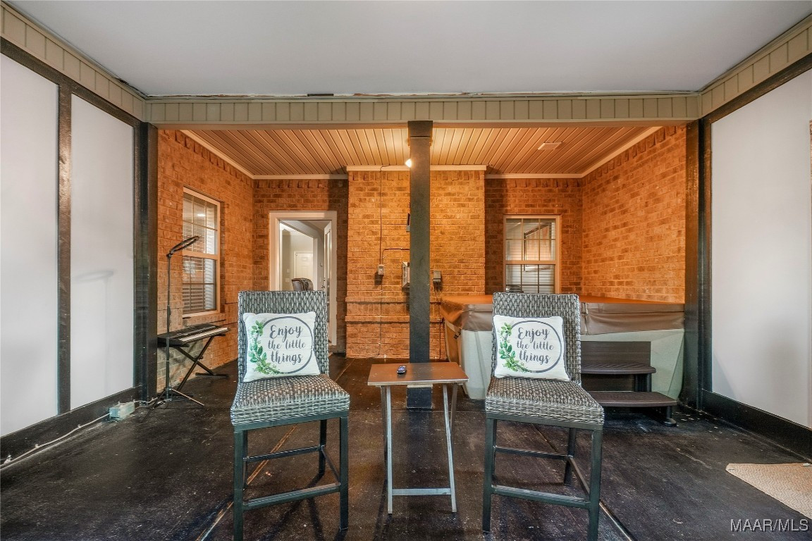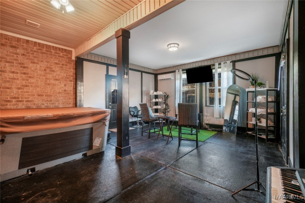 Outdoor living is a highlight, featuring a covered patio, an additional exercise area, and a dedicated cooling system, all of which allow for comfortable year-round use. A hot tub enhances the home’s relaxing and entertaining atmosphere.