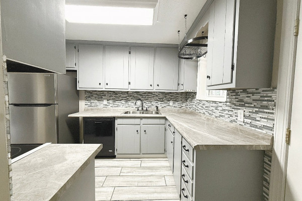 The kitchen has been given a cheerful update with newly painted cabinets, modern hardware, and a brand-new refrigerator. Vinyl windows throughout mean low maintenance, plus storm doors add extra weather protection.
