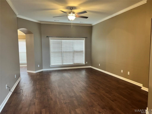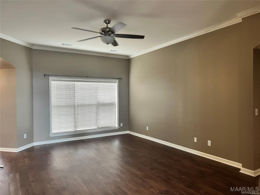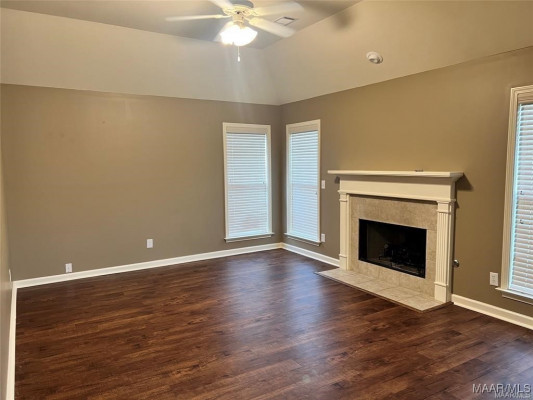 Available JUNE 20, 2026. Sec Dep $2200/ Pets are negotiable with owner approval only with $25/month fee per pet. Fantastic home in Highland Ridge with four bedrooms, two bathrooms, and two living areas. Kitchen offers plenty of cabinet and counter space as well as a work island, a pantry, and stainless appliances (refrigerator remains). Kitchen overlooks a sunny breakfast nook and a family room with a gas fireplace. This split floor plan offers 2 bedrooms on each side of the house. The master suite is large and private. It features a generously sized walk-in closet, a garden tub and separate shower, a long double sink vanity with storage, and a separate water closet. All three of the guest bedrooms have nice size closets and plenty of space for furniture. The guest bath also has a long vanity with storage. The laundry room has shelving above the washer/dryer space and an extra wall that will accommodate furniture for more storage. The oversized double garage has extra space on one side for storage or a work area. An extended patio overlooks the large, privacy fenced backyard with a workshop & garden boxes. Neighborhood amenities include a pool (with membership) and green spaces. This home is zoned for the popular Daniel Pratt Elementary School. The commute to Maxwell AFB and downtown Montgomery is less than 20 minutes. Shopping and eating establishments are just seconds away. No smoking allowed in the property or in the garage. Tenants are responsible for yard maintenance (to include mowing, weed eating, edging, weed maintenance in yard & flower beds & shrub trimming), pest control, air filters & all utilities. Section 8 is not allowed.