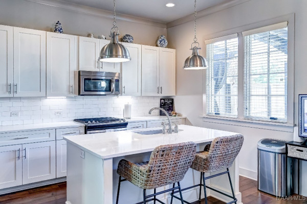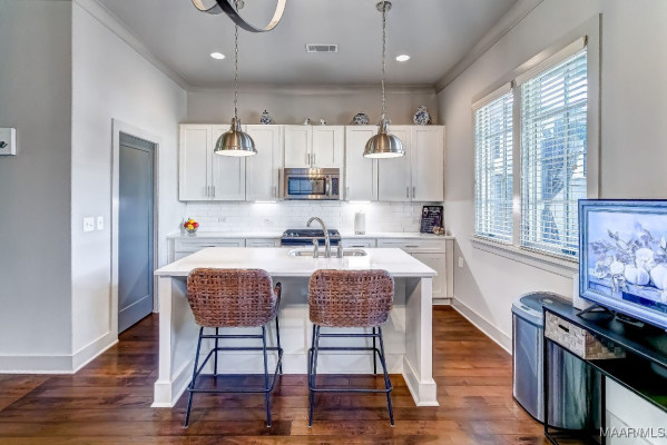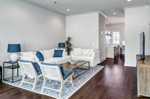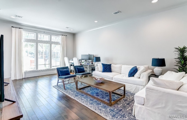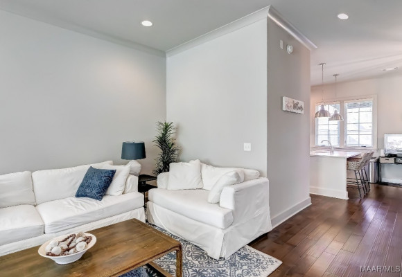 Wood flooring flows through very spacious Living areas downstairs. Transom windows add to the abundance of natural light, and crown molding is the perfect accent. Kitchen area incorporates a charming Nook overlooking the Island and quartz counter tops. Pocket door leads to large pantry and floor to ceiling cabinetry for plenty of storage! Hardwood flooring runs through the upstairs as well — Bedrooms each have a private bath. Owners Suite has garden tub, shower, double vanity and large closet, bath 2 has single vanity and tile shower. Laundry room conveniently located at top of stairway. This home has a beautifully designed outdoor living space off the Kitchen–enjoy mornings and evenings both under the covered porch with ceiling fan; very private with fence surround and a double gate to the parking area. This Townhome is easy to “Lock and Leave” making travel plans easy and coming home a pleasure! Plus, this home is 3 doors down from one of two Pool areas! And there’s so much more to enjoy here ~ Tennis & Pickle ball courts! Also Fishing Lakes, Hampstead Athletic Club, Community Farm, Dog Parks, Soccer fields, Montessori school, and a Public Library branch! Stay in the neighborhood and walk to neighborhood restaurants: The Tipping Point, Taste and City Grill!