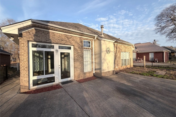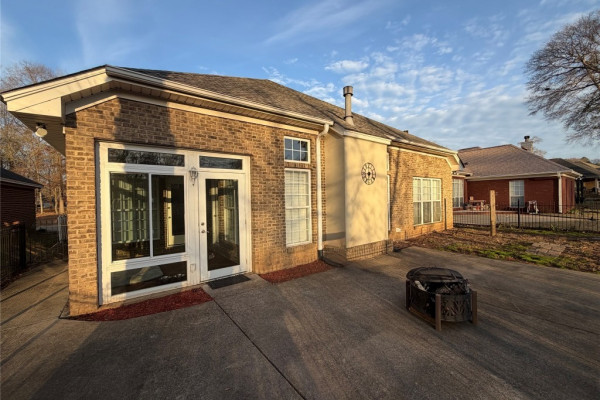 The kitchen is a true standout, featuring a recently updated recessed wood ceiling, ample cabinetry, a tiled backsplash, breakfast bar, and a separate pantry. The open layout flows perfectly into the casual breakfast area, making it ideal for everyday living and entertaining. Just off the living room and breakfast area, the glass sunroom provides additional space to relax, unwind, and enjoy the view year-round. Located on the 18th hole of Emerald Mountain Golf Course and pond. Iron gate gives access to pond in back.