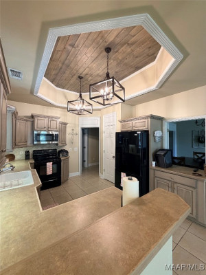 The kitchen is a true standout, featuring a recently updated recessed wood ceiling, ample cabinetry, a tiled backsplash, breakfast bar, and a separate pantry. The open layout flows perfectly into the casual breakfast area, making it ideal for everyday living and entertaining. Just off the living room and breakfast area, the glass sunroom provides additional space to relax, unwind, and enjoy the view year-round. Located on the 18th hole of Emerald Mountain Golf Course and pond. Iron gate gives access to pond in back.