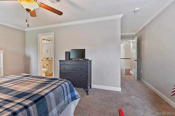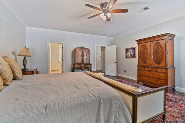 This gorgeous home offers lots of space, a resort like backyard with beautiful landscaping, salt water pool with new liner,and it’s completely fenced. Fresh paint! Move in ready! There’s also tons of space and upgrades that can be found throughout! Located in a quiet cul-de-sac. 3 car garage! 6 large bedrooms PLUS bonus room. Large pantry and laundry room. The large master bedroom has hard wood floors and en-suite with a jetted tub, tile shower and large walk-in closet. Extended patio pergola. Thick molding throughout. The large kitchen has stainless appliances with a quiet run dishwasher. Large floored attic spaces that are all spray foam insulated with tons of room for storage. Don’t miss the opportunity to make this home yours!