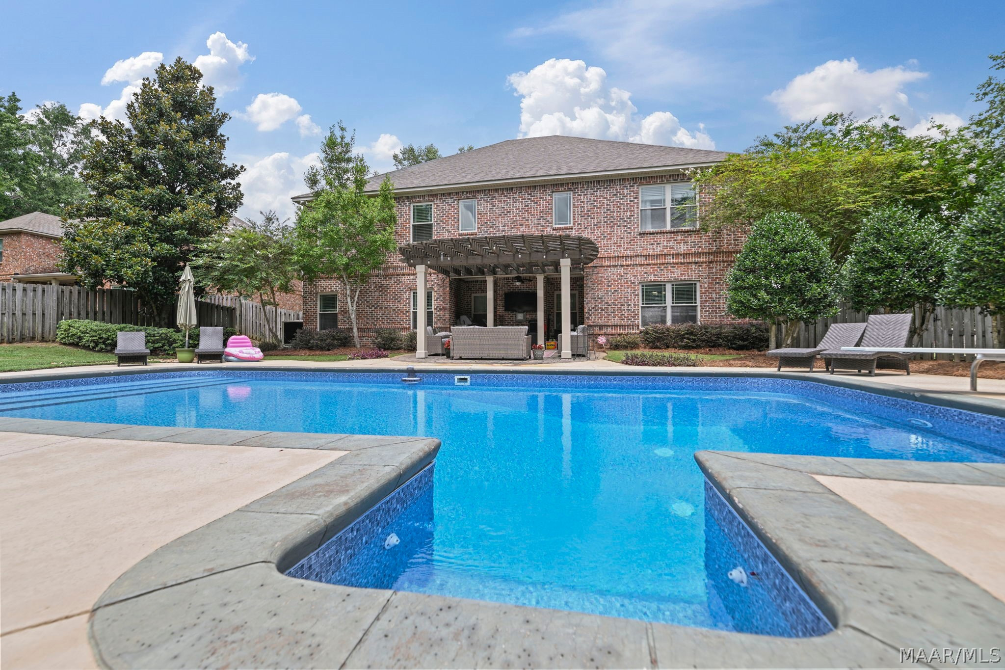 This gorgeous home offers lots of space, a resort like backyard with beautiful landscaping, salt water pool with new liner,and it’s completely fenced. Fresh paint! Move in ready! There’s also tons of space and upgrades that can be found throughout! Located in a quiet cul-de-sac. 3 car garage! 6 large bedrooms PLUS bonus room. Large pantry and laundry room. The large master bedroom has hard wood floors and en-suite with a jetted tub, tile shower and large walk-in closet. Extended patio pergola. Thick molding throughout. The large kitchen has stainless appliances with a quiet run dishwasher. Large floored attic spaces that are all spray foam insulated with tons of room for storage. Don’t miss the opportunity to make this home yours!
