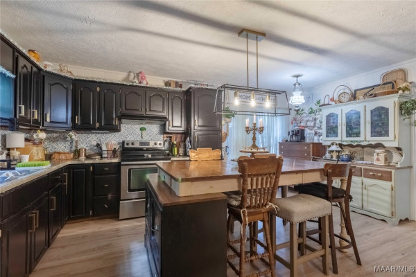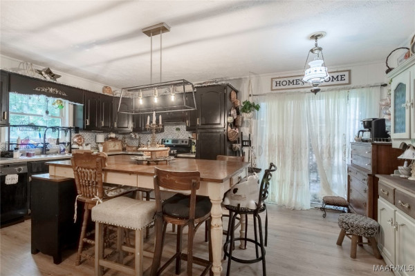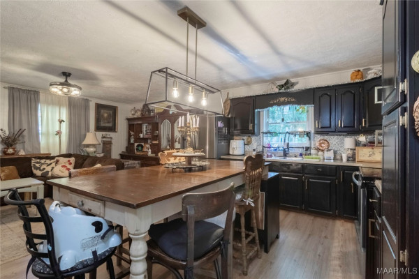 Inside, you’ll find an open floor plan that keeps everything feeling bright and connected. The living room flows right into the kitchen and dining area. The kitchen itself has plenty of counter space and cabinets.