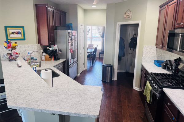 Available for rent in Deer Creek June 1st for $2,200/month. Up to 2 pets allowed with owner approval only and $25/month nonrefundable pet fee per pet. This spacious all-brick 4BR/2BA home offers a split-bedroom layout with great flow and plenty of living space. Enjoy wood flooring in the main living areas and primary bedroom, good sized formal dining room, and two living areas—a formal living room plus a cozy den with tray ceiling & a gas-log fireplace. The fully equipped kitchen features granite countertops, a breakfast bar, gas range, built in microwave, dishwasher & refrigerator. The primary suite is a true retreat with French doors to the patio outside & tray ceiling & an ensuite bathroom with double/split vanities with new granite tops, water closet, walk-in shower, garden tub, and a nice walk-in closet with built ins. Guest bedrooms are located on the opposite side of the home and share a hall bath that has double sinks & separate tub/toilet area. Outside, unwind on the covered patio with stamped concrete overlooking a beautifully landscaped privacy fenced backyard. Two-car garage provides covered parking and extra storage. Tenants are responsible for HVAC filters, Pest control, Lawn Maintenance (to include edging, weed eating, weed maintenance for lawn & flower beds, and shrub trimming), and all utilities. No Section 8 Allowed.
