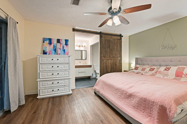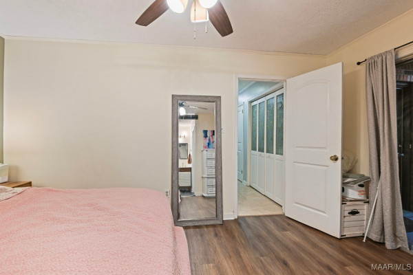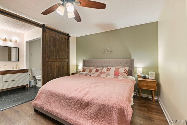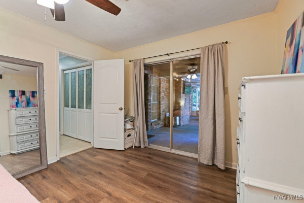 The master suite is a true retreat, featuring a generous walk-in closet and private access to the expansive screened porch—perfect for relaxing mornings or restful evenings.