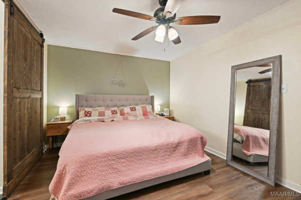 The master suite is a true retreat, featuring a generous walk-in closet and private access to the expansive screened porch—perfect for relaxing mornings or restful evenings.