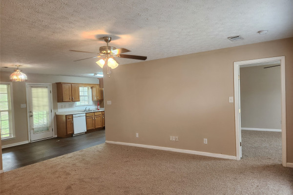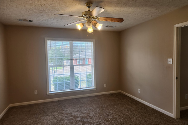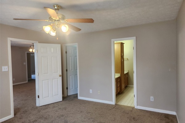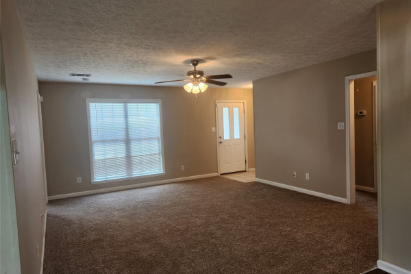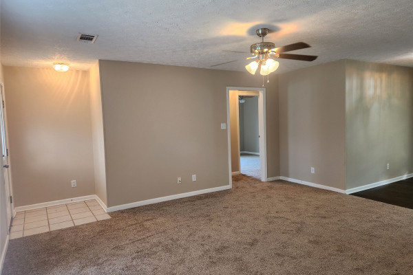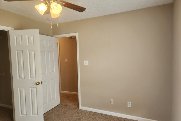 Available March 1, 2026 – 3 bedroom 2 bath home set up in a split floor plan style. Main bedroom is to the right side of the home off the living room. This room enjoys an attached bath as well as a walk in closet. On the other side of the home are 2 bedrooms, both with walk in closets and a full bath in between. The kitchen is set up in a galley style with an oven, dishwasher and microwave. There is also a breakfast area to the left of the kitchen. To the right side is the laundry area with wall cabinetry and a door to the driveway. The back yard is fully fenced and has a covered patio. New carpet throughout and new flooring in kitchen and laundry – hame has been freshly painted. Pets are negotiable.