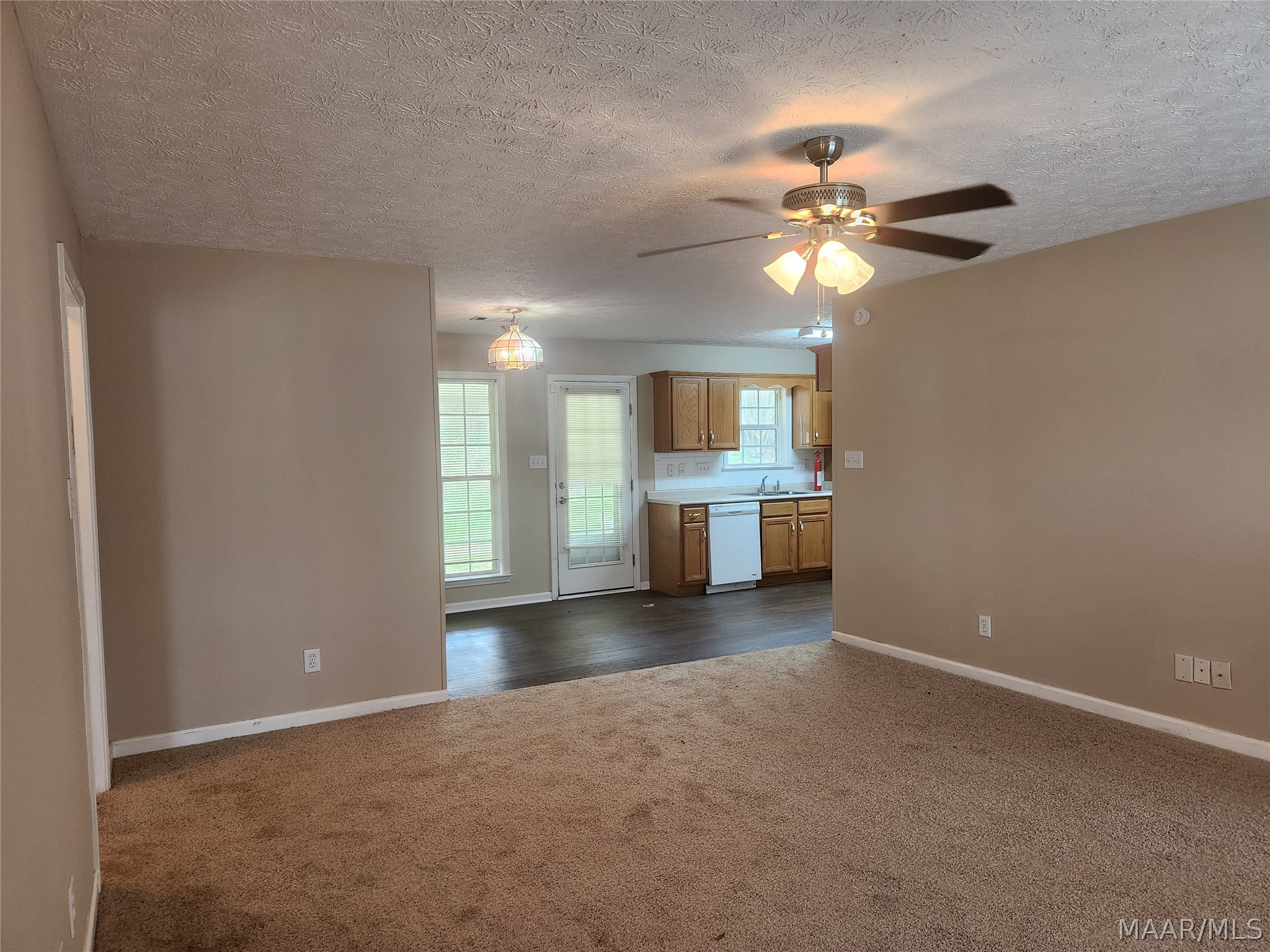 Available March 1, 2026 – 3 bedroom 2 bath home set up in a split floor plan style. Main bedroom is to the right side of the home off the living room. This room enjoys an attached bath as well as a walk in closet. On the other side of the home are 2 bedrooms, both with walk in closets and a full bath in between. The kitchen is set up in a galley style with an oven, dishwasher and microwave. There is also a breakfast area to the left of the kitchen. To the right side is the laundry area with wall cabinetry and a door to the driveway. The back yard is fully fenced and has a covered patio. New carpet throughout and new flooring in kitchen and laundry – hame has been freshly painted. Pets are negotiable.