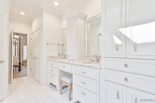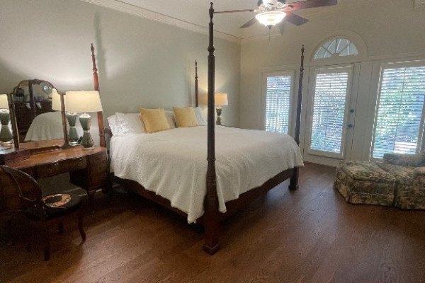 BEAUTIFULLY UPDTED home in WYNLAKES, a GATED COMMUNITY. The open floor plan features tall ceilings, crown molding and lots of storage, living room and dining room and family room. Landscaped grounds with flagstone walkway, fountain, arbor with bench, separate garden area for special flowers or vegs. Main bedroom and bath on main level situated away from entertaining areas and features trey ceiling, French doors with plantation shutters overlooking back yard provide great natural light, bath offers a walk in closet with custom shelving and a second closet, an oval soaking tub, glass shower, double vanity, granite counter tops, custom cabinets. Upstairs are 2 bedrooms, connecting bath each with private vanity areas and separate shared toilet and tub with shower. Also upstairs is a bonus area with ceiling to floor bookcases ,storage cabinet, perfect for home office or study area. 2 bedrooms feature walk in closets, one has door to walk-in attic. Family room with beautiful masonry fireplace and bookcases with storage cabinets below. Monthly average utilities: Water 124.19, Gas 52.64, Electricity 154.76.Updates include: Roof 2025, Interior & Ext. painting 2025, foam insulation 2017, HVAC upstains 2025, downstairs 2016, tankless gas water heater 2022, main level wood flooring 2025, upstairs carpet 2025, epoxy garage floor 2025. Other amenities incl. sprinkler system, plantation shutters thru out, updated stainless steel kit appliances. Built in linen cabinets up and down, 2 remote thermostats, Double oven is electric. Professional photos to follow soon.