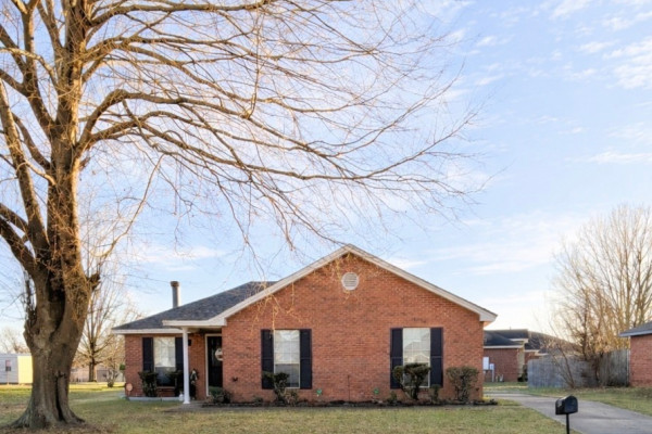 Welcome to this beautiful full-brick 3-bedroom, 2-bath home that checks all the boxes! Step inside the spacious Great Room, featuring vaulted ceilings and a cozy wood-burning fireplace—perfect for family movie nights and relaxing evenings at home.