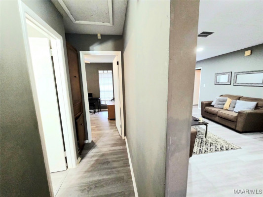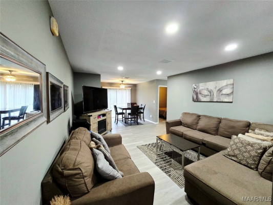 MOVE-IN READY! ATTENTION INVESTORS! This well maintained 3-bedroom, 2-bath home offers 1,110 sq ft with a desirable split floor plan, walk-in closets, ample storage, and a full-size laundry room. Recent updates include recessed lighting and durable laminate flooring throughout, with some renovations already completed. Security bars provide added peace of mind. It is conveniently located near I-85, I-65, Downtown Montgomery, Maxwell AFB, and Gunter AFB. This property is ideal for a first-time homebuyer or an investor seeking rental potential.