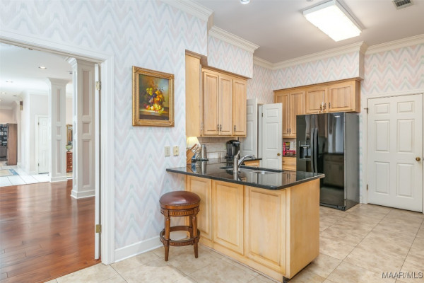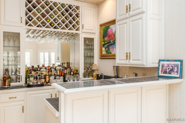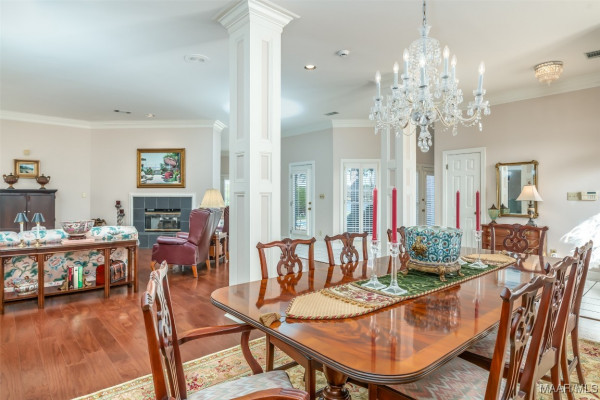 PEACEFUL LAKE AND FOUNTAIN VIEWS can be enjoyed from this inviting three-bedroom, two-bath home nestled on a quiet Wynlakes cul-de-sac. Designed for comfort and versatility, the popular one-story floor plan features incredible options for indoor and outdoor living. Entertaining is a breeze with the open dining room and gracious living area, and the large adjoining sunroom with a wet bar and access to the brick patio and sparkling pool. The kitchen features custom cabinetry, granite countertops, and a breakfast area. There are two fireplaces: one shared with the living room and sunroom, and the other in the gracious owner’s bedroom and sitting room. Extras include plantation shutters, custom built-ins, wood floors, and generous storage. Enjoy outdoor living on the large brick patio overlooking the pool, the well-landscaped yard, and the lake with fountain. A two-car garage with storage completes this well-maintained home. Don’t miss this excellent opportunity.