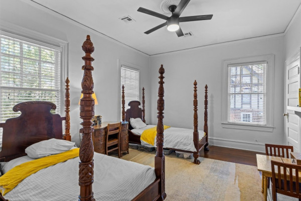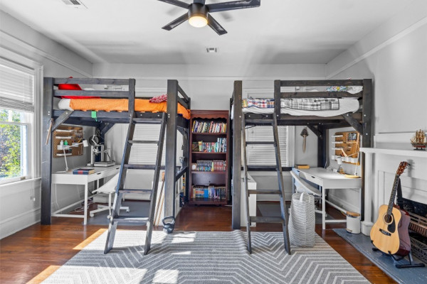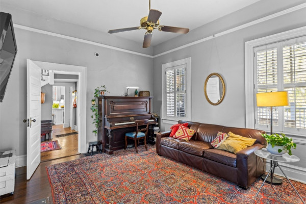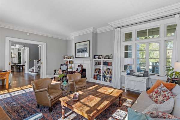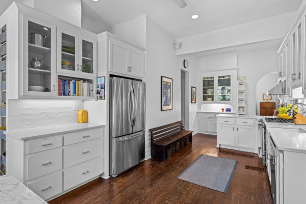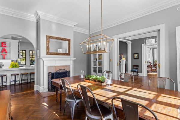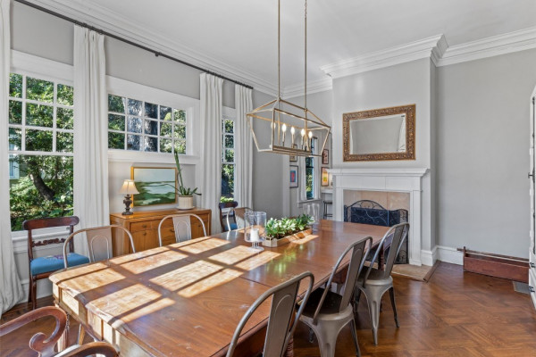A spacious front porch welcomes you and provides the perfect setting to visit with neighbors passing by. Inside, tall ceilings and stunning hardwood floors flow throughout expansive living spaces and generously sized bedrooms. The formal living and dining rooms each feature their own fireplace, creating warm, inviting areas for everyday living and entertaining.